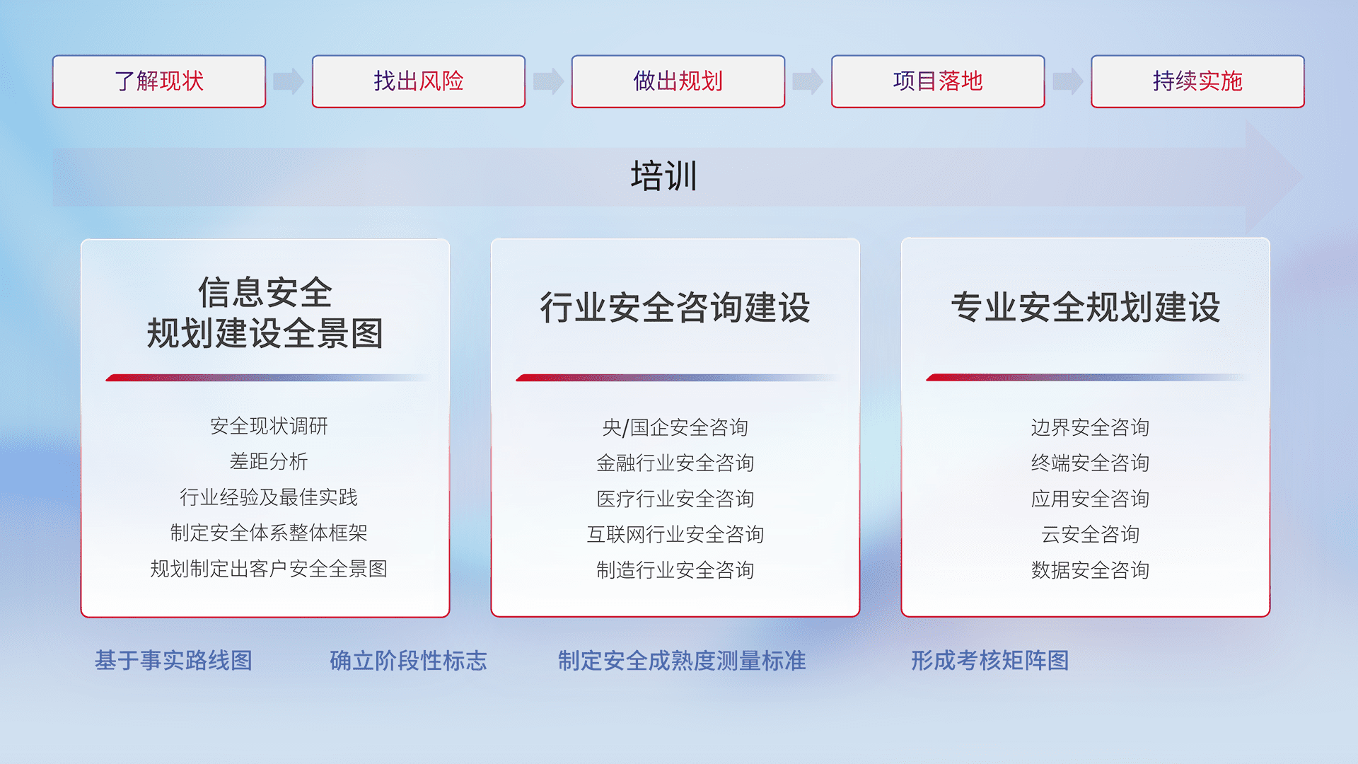 梳理客户信息安全现状调研、、差距分析结果,,,,结合行业先进经验及最佳实践,,制订客户的信息安全管控体系总结架构,,最终形成一个完整的客户信息安全规划与建设的全景图。。。。